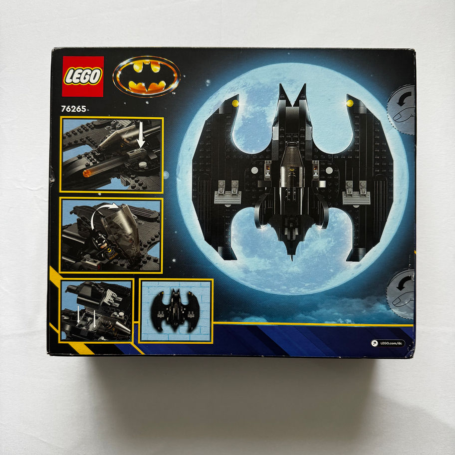 The buildable Batwing model has 2 stud launchers, a cockpit and a compartment for Batman’s Batarangs and handcuffs.