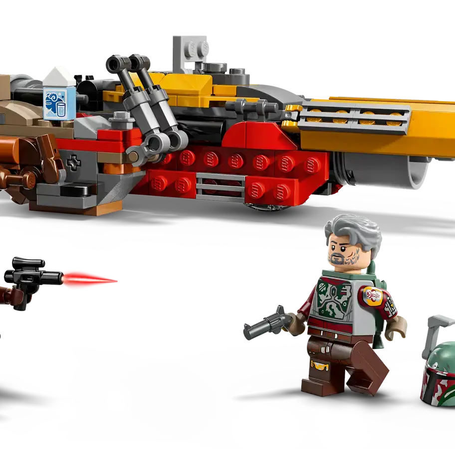 Team up with Cobb Vanth for action-packed battles against Cad Bane with this exciting LEGO® Star Wars™ vehicle toy building set for kids (75437). Build a detailed LEGO brick model of Cobb Vanth’s awesome speeder from Star Wars: The Mandalorian™ Season 2. It’s got a driver’s seat for the Cobb Vanth LEGO minifigure, a clip for his pistol and a hidden compartment to stow iconic accessories including Boba Fett’s helmet and a bantha milk carton. The included Cad Bane LEGO minifigure is equipped with2 blaster pistols, and Cobb also has a jetpack for aerial action play.